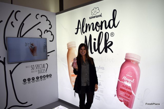 Joana Santos, of GL, promoting a new almond milk.