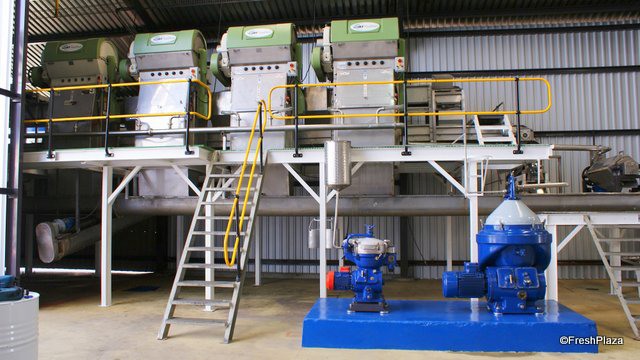The juicing plant, capable of processing 21 000t of fruit yearly, to produce juice concentrate, citrus oil and ground citrus peel.