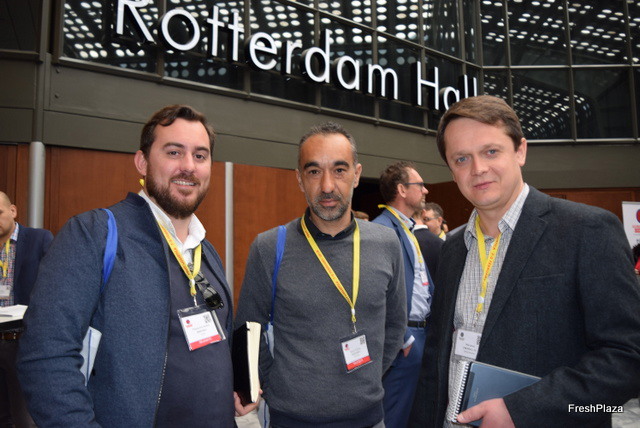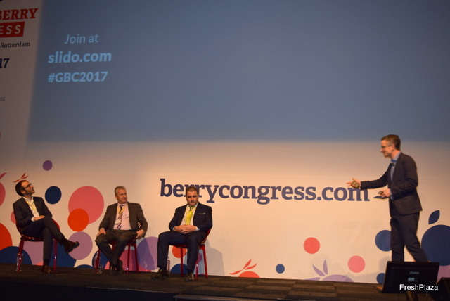 Pedro Braganca from Bfruit, Jan van Bergelijk from Plus Berries (Spain) and Ben Maes from Special Fruit (Spain) during the panel discussion about 'The consumption challenge'.