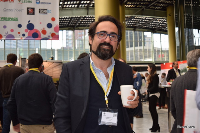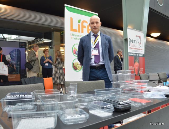 Mauro Stipa from the Italian company Ilip, presenting new packaging that increases berry shelf life.