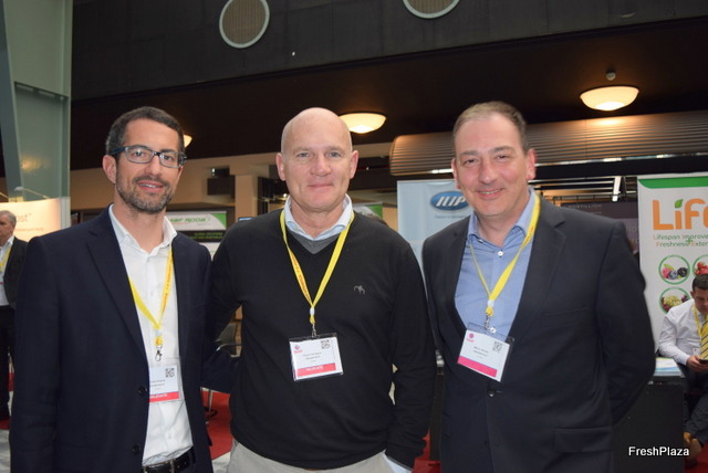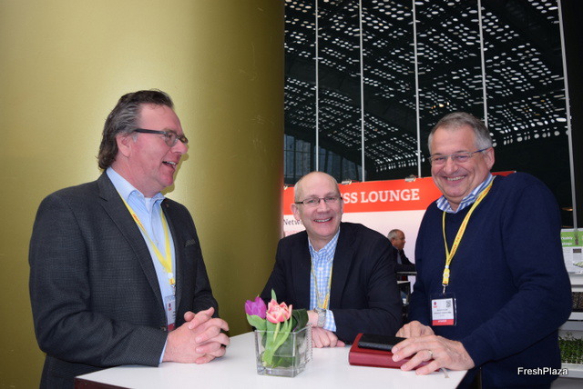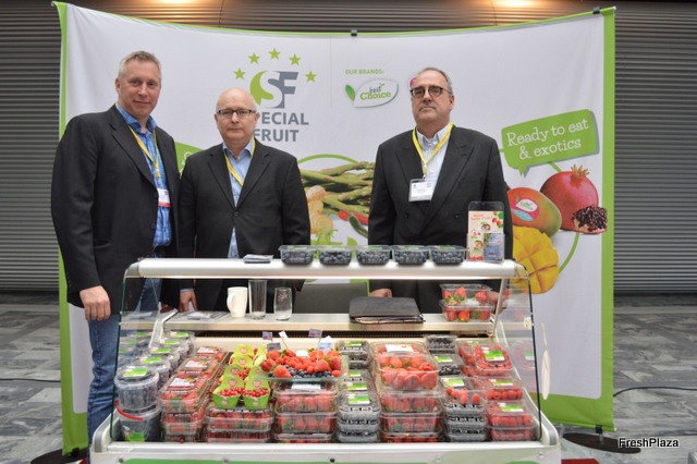 At the Special Fruit booth; Johan Verberck, Ben Maes and Piet Meerkerk, representing the Belgian company.