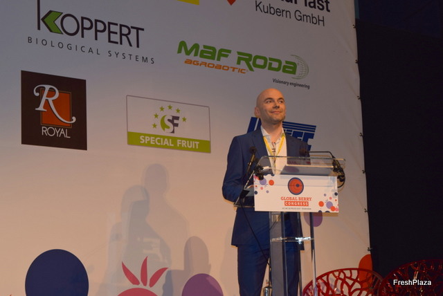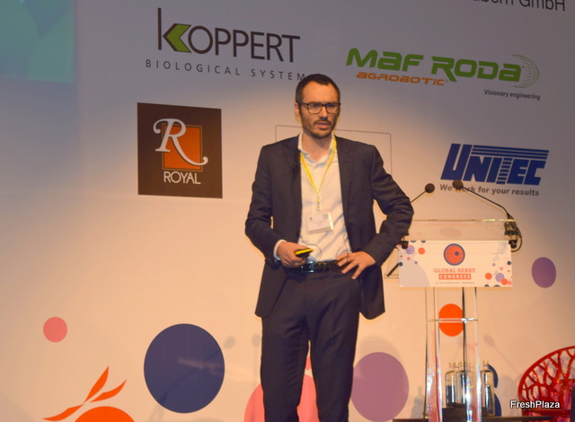 Pedro Braganca from Bfruit (Portugal) speaking during the presentation about new strategies and opportunities on how to sell more berries.