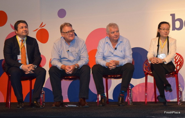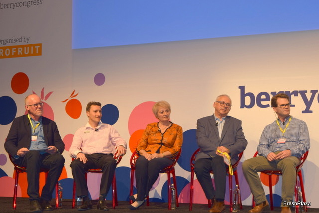 John Shelford from Naturipe, Peter McPherson from the IBO (Australia) and Cort Brazelton from Fall Creek Farm & Nursery (US), speaking during the workshop 'Blueberries: Trends and Forecasts'.