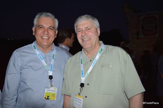 Alfredo Rodriguez with Agro Export Avocados and Dennis Kihistadius with the National Mango Board