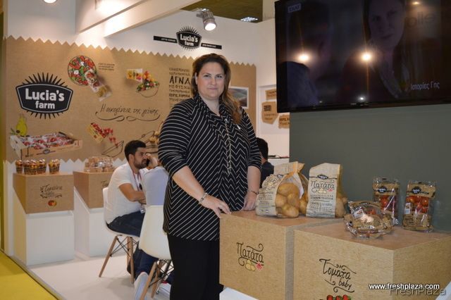 Ms.Loukia Efthymiadis for Lucia's Farm ; used to offer tomatoes only but now they also have potatoes.