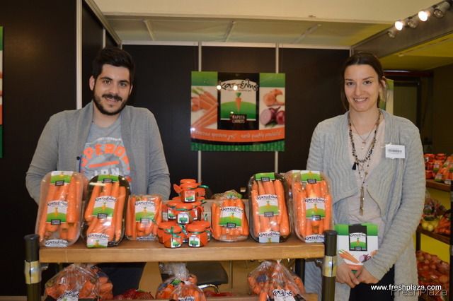 Sales Manager Lamprou Konstantinos and Katerina for Kapota Carrots; clients are Greek supermarkets and central markets.