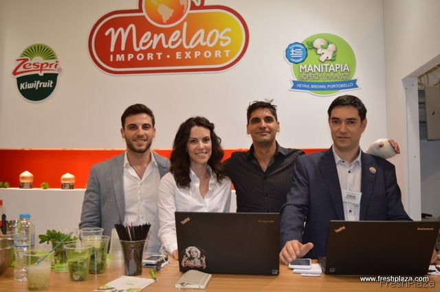 The Menelaos team: Nikitas Varvaresos (1st - l); Sprisos Varvaresos (3rd); and Menelaos Tzouris(4th); Menealos is a Zespri distributor and an importer of Thai coconuts.