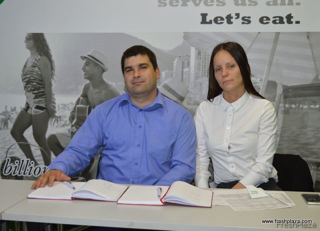 Editor Takis Orfamos with Journalist Marianna Kourkoni of Froutonea magazine; sponsored and organized FreshCon market (Freskon - Greece).