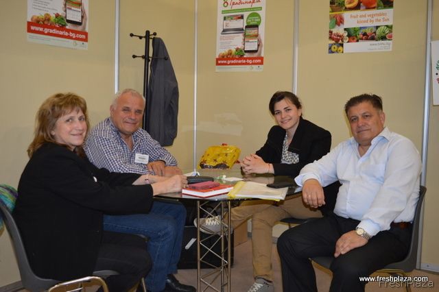At the Bulgarian stand: Simona of Sunday Food Ltd. (2nd - left) with Board Member Mariana Miltenova of Bulgarian National Horticultural Union (1st - right) and members.