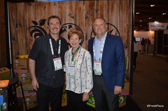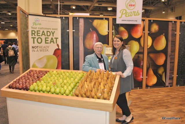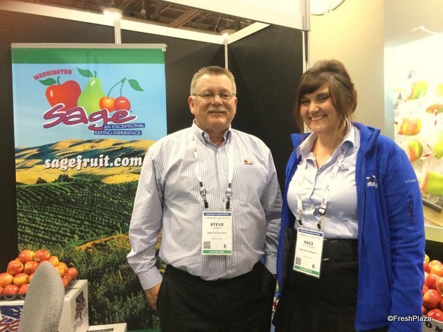 Steve Kuebler and Kaci Komstadius (right) of Yakima, Wa.-based Sage Fruit Co.