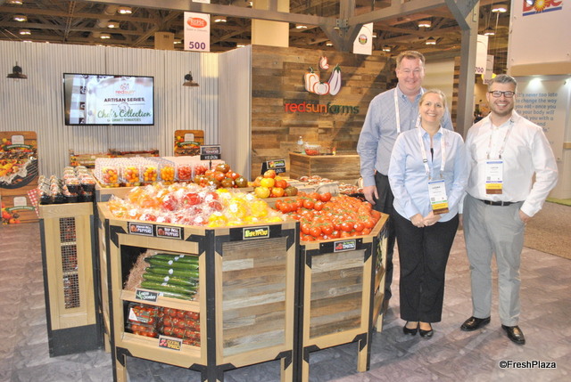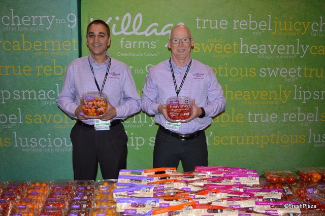 Aman Chatha and Rob Jackson with Village Farms show true rebel mix tomatoes as well as heavenly villagio marzano