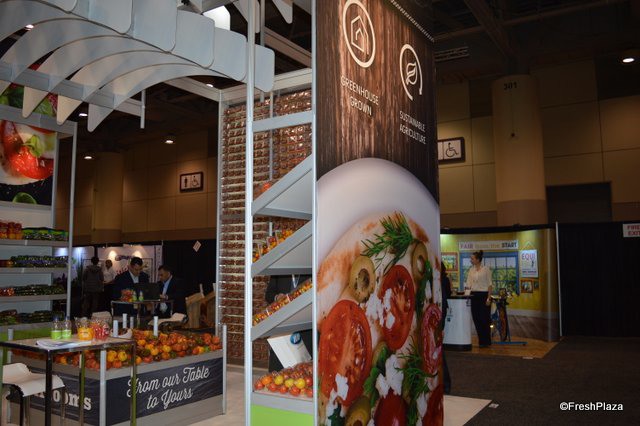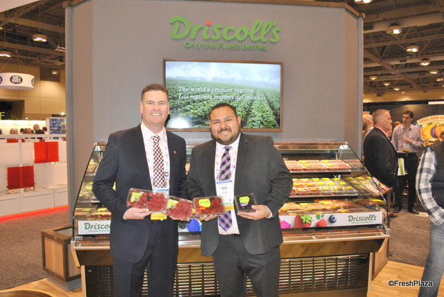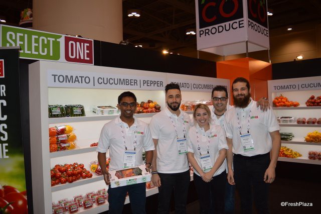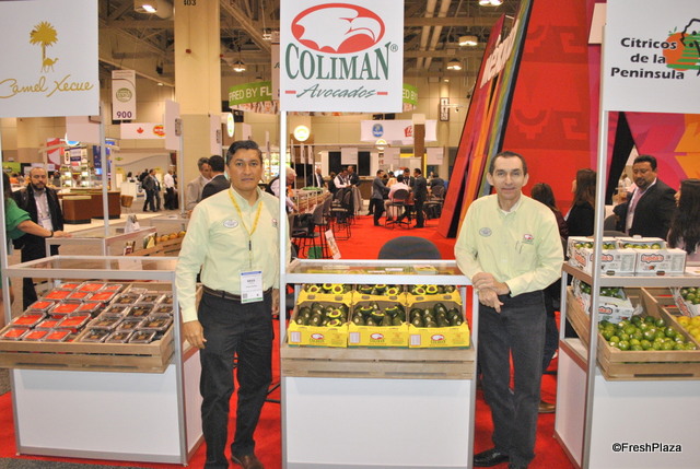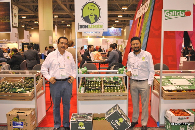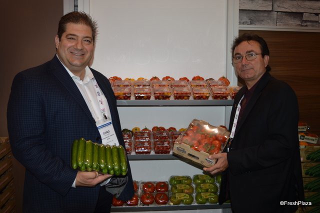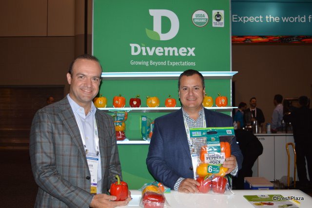 Luis de Saracho and Jaime Tamayo with Divemex show greenhouse grown bell peppers from Mexico. This week, the company unveiled it fresh new brand with a new logo and the tagline Growing Beyond Expectations.