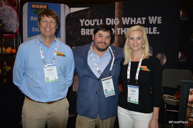 Hunter Gibbs and Laura Hearn with Nash Produce. In the middle is Justin Lenz with Giro Pack.