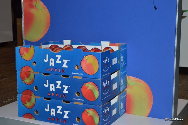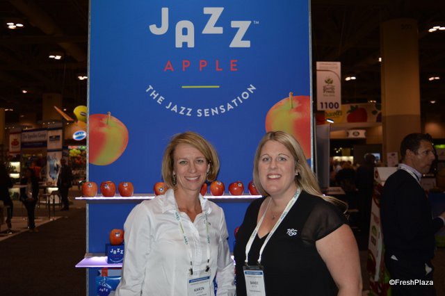 Karin Gardner with Oppy and Sandi Boyden with T&G Global promoting the refresh of the Jazz Apple