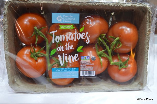 A new product from Double Diamond Farms: organic tomatoes on the vine