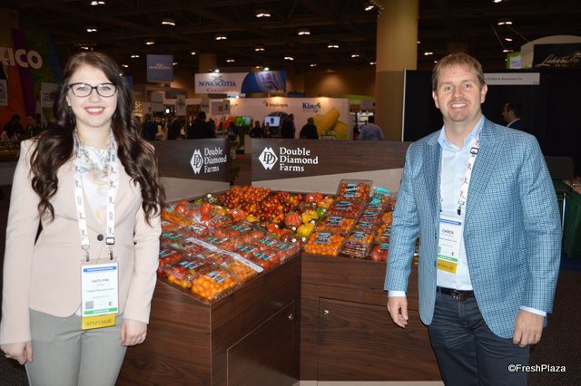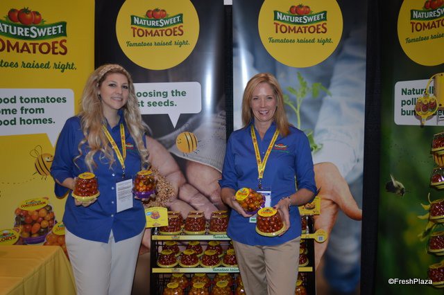 Aimee Poliquin and Heather Dunagan with NatureSweet, showing Constellation tomatoes that serve every occasion as well as Cherubs that are preferred for salads.