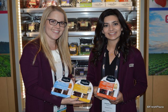 Marissa Ritter and Jaqueline Padilla of Naturipe Farms show new ready-to-eat snack trays.