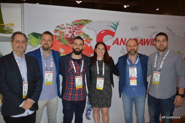The team of Canadawide is well represented at CPMA. From left to right George Tsigakis (responsible for organic produce), Nick Pitsikoulis, Yanni Alexakis, Christine Lavoie, George Pitsikoulis and Greg Kritselas.