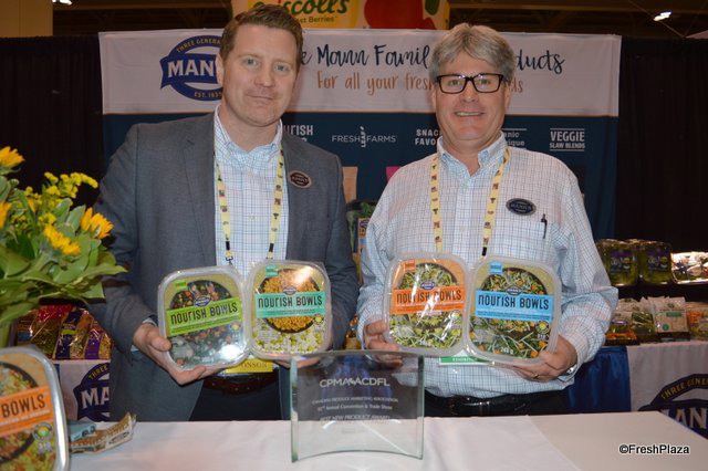 Ben Alviano and Scott Wise with Mann Packing proudly show the Nourish Bowls that won the Best New Product Award.