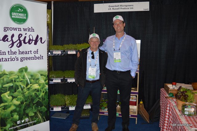 Ian Adamson and Michael Curry with Greenbelt Microgreens proudly stand in front of the microgreens display.