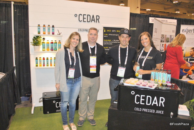 Ashley Cuff, Guy Millet, David Ford and Robyn Barefoot from Cedar promoting their cold pressed juices