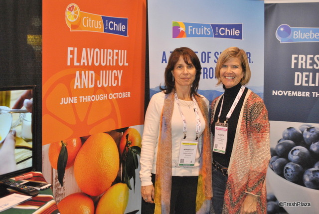 Monserat Valenzuela and Karen Brux from Chilean Freesh Fruit Association promote the citrus industry from Chile. The season looks very good with more manadarins coming.