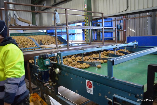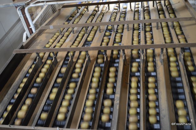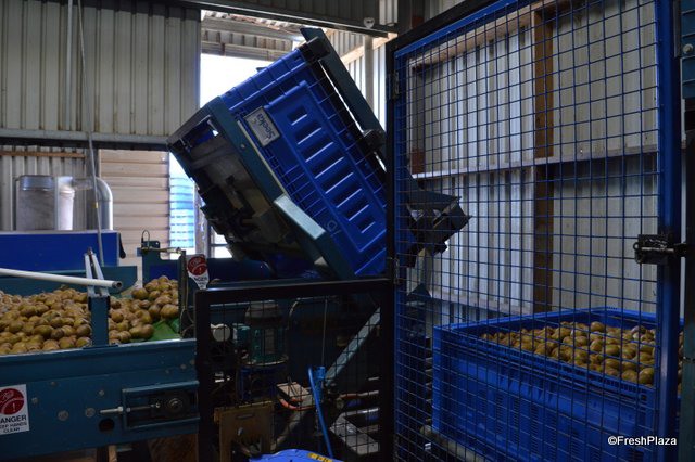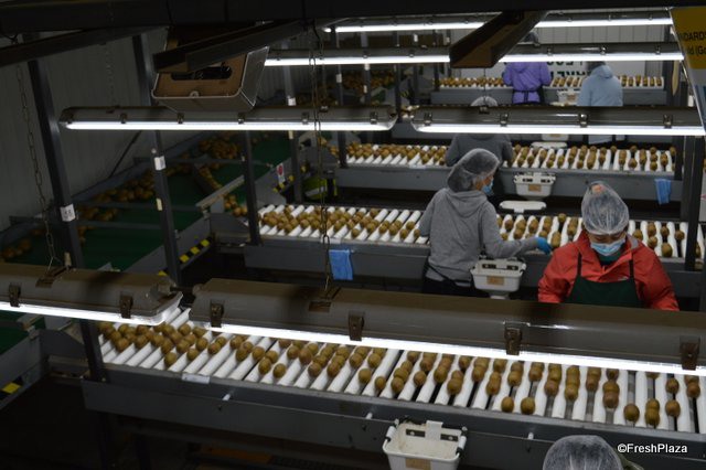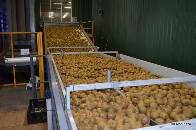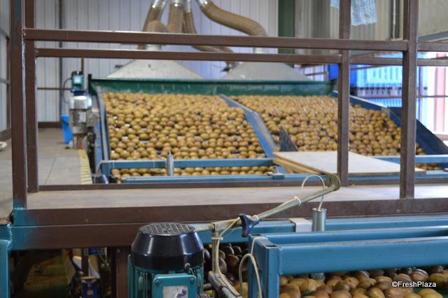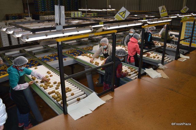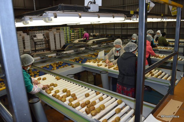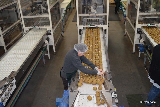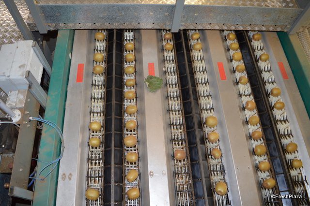 Here the kiwifruit is sorted by feel, the biggest problem with kiwis is if they are soft at this stage.