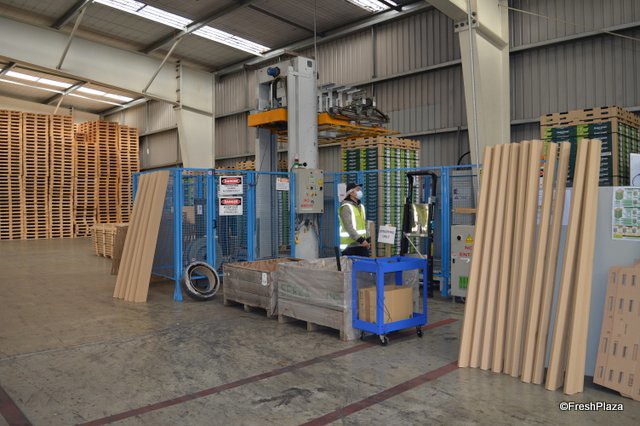The automatic palatizer, means less labour costs and the the pallets can stack higher for the container shipping.