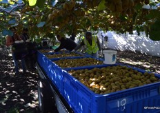 Next we went to see some harvesting, here are blue bins developed by Seeka.