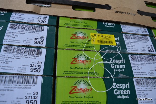 Zespri greens in the cold storage with Xsense tag to monitor the temperature.