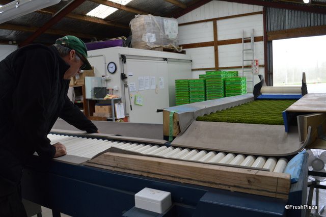 Fran's son has specially adapted much of the sorting machine for the feijoas. Here has designed a stand on which the boxes fit perfectly.
