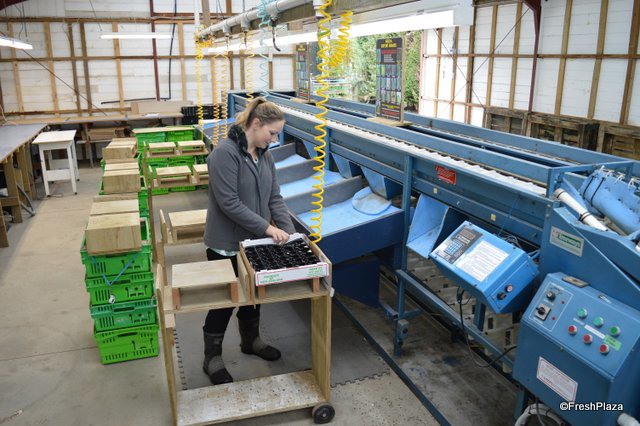 On the pre-grader the fruit is sorted for the export or domestic markets.