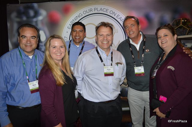 The team of Driscoll's has organic strawberries, blackberries, blueberries and raspberries on display. Proudly shown by Douglas Ronan, Wyard Stomp, Vanessa Plummer, Steve Trede and Tim Youmans. Wyard just transitioned from Driscoll's Europe to the US.