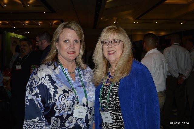 Walking the trade show are Karen Hearn and Cindy Plummer with the California Table Grape Commission.