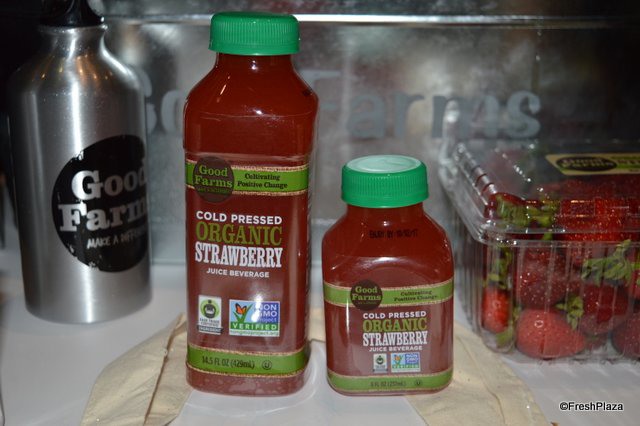 Cold pressed organic strawberry juice from GoodFarms was launched three months ago. It is available at Costco and Whole Foods Market in Southern California.