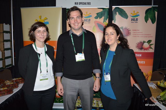 Samantha Barthel, Lorenz Hartmann de Barros and Melissa Hartmann de Barros from HLB Specialties show the company's tropical and exotic fruit varieties.