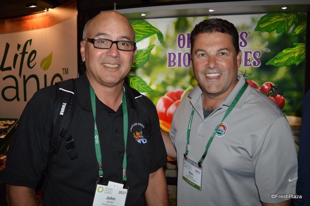 Steve Zaccardi and Stephan Cowan with Mucci Farms are walking the trade show.