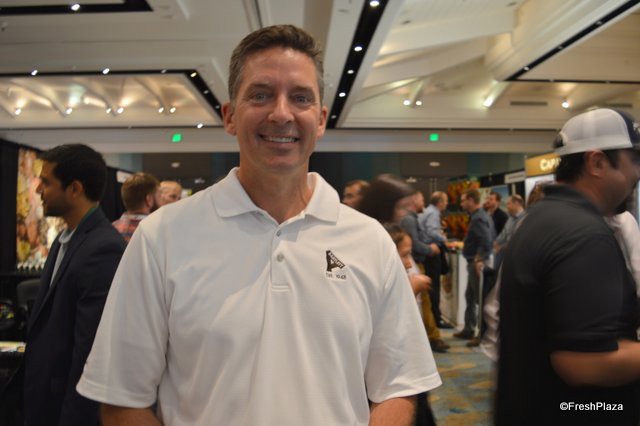 Nissa Pierson with Crespo Organic Mangoes is attending the show and talks with Bob Stone of Robinson Fresh.