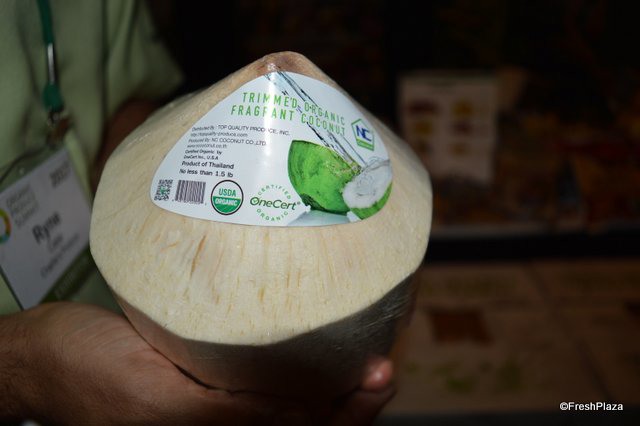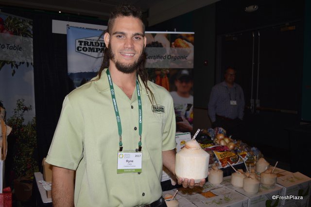 Ryne Case with Charlie's Produce was one of the most popular people at the show. The company brought about 900 organic coconuts that were given away to show attendees.