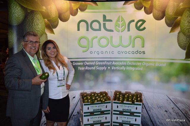 Dan Acevedo and Jailany Betancourt with GreenFruit Avocados show the company's organic avocado program, called Nature Grown.