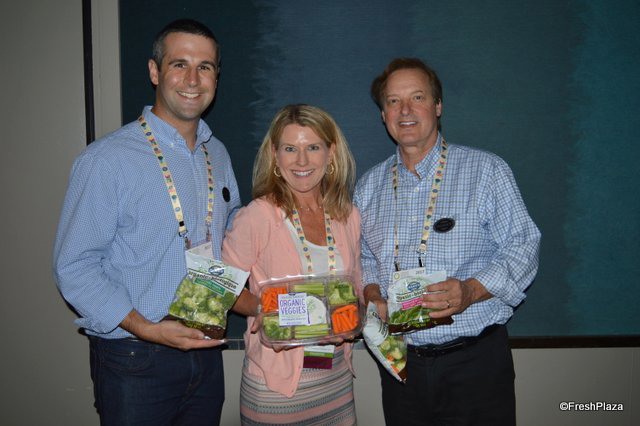 Alex McCloskey, Kim St. George and Jeff Freeman with Mann Packing show a selection of the company's organic vegetable options.