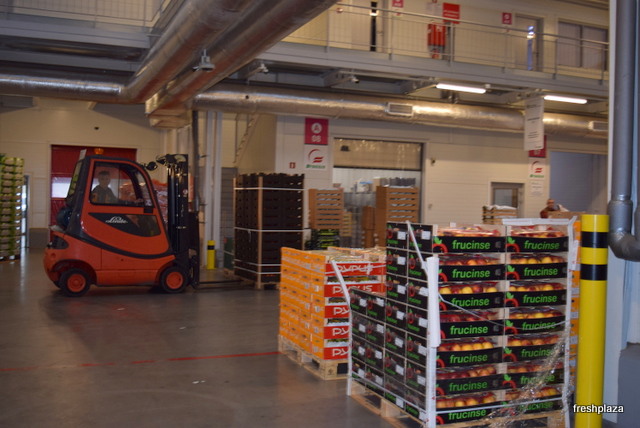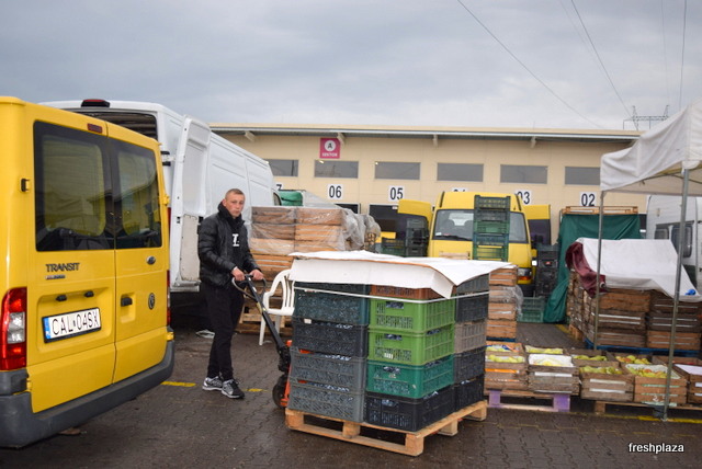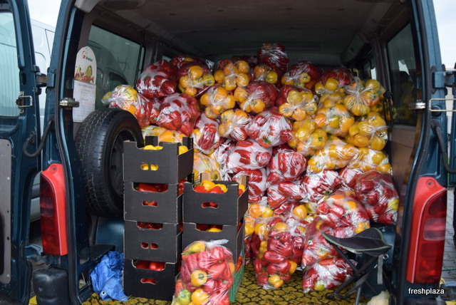 Loading the fresh fruit and vegetables.