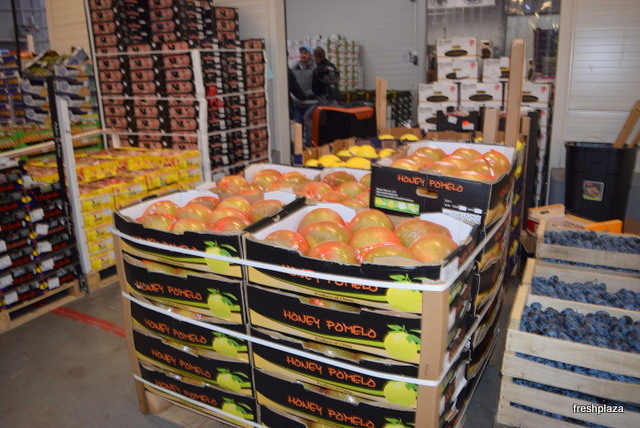 A wide variety of fruits are available, including these pomelos.