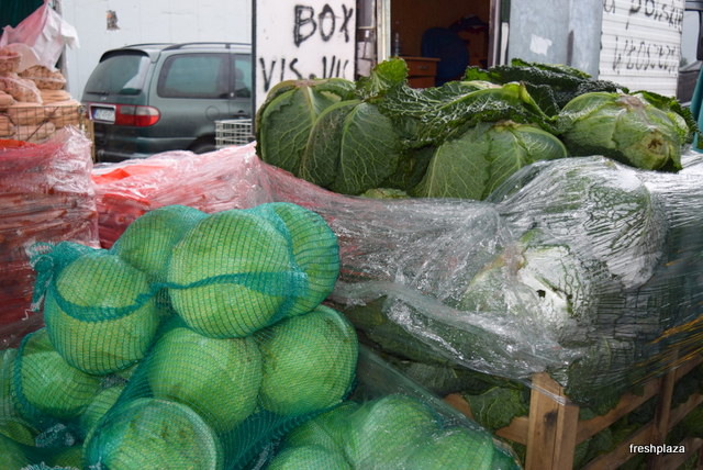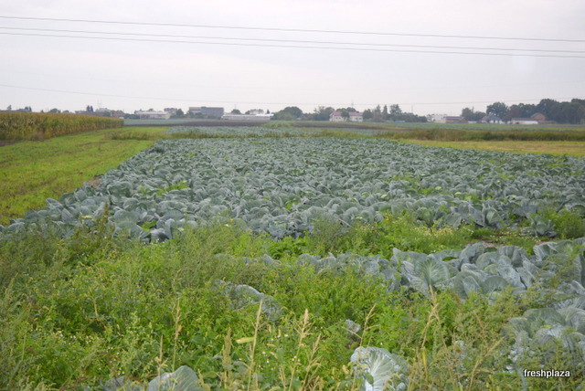 A cabbage field right behind the gates of the Bronisze market.