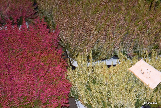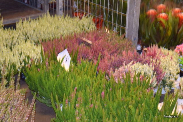 Throughout the flower section of the market, heather was on display in a wide range of colours.