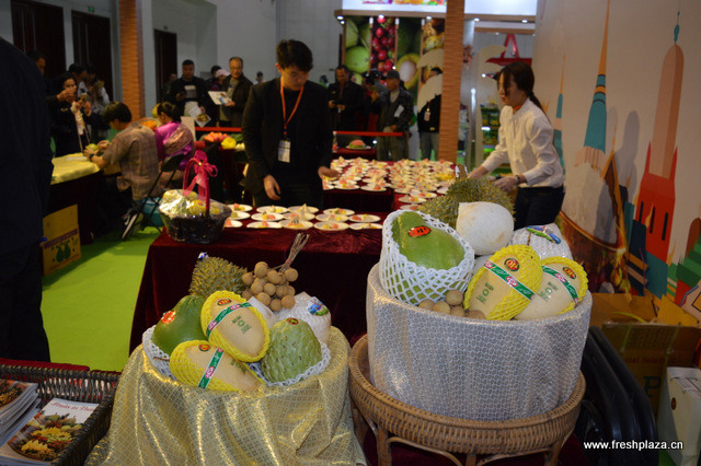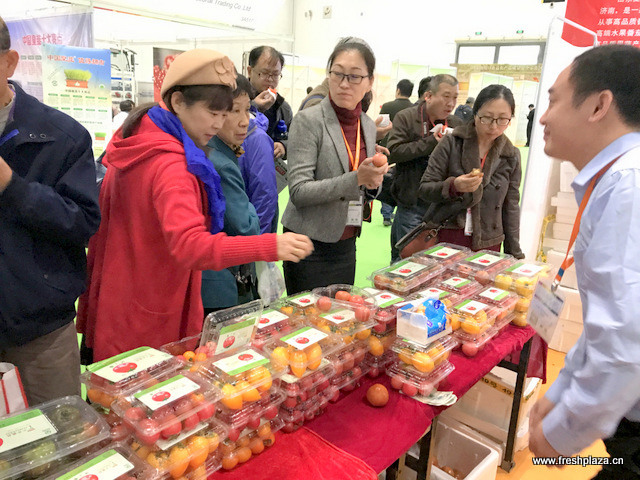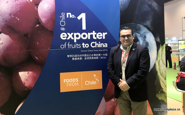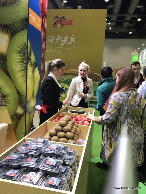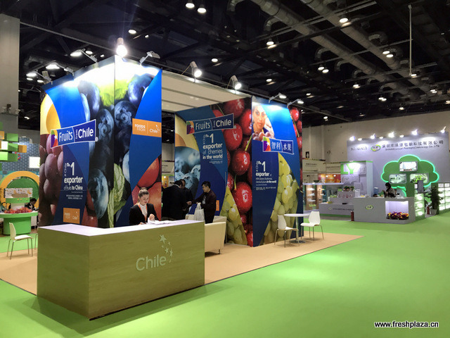 Lots of interest at the Chilean pavilion. Chile is one of the largest fresh fruit exporters to China. It's cherry season, which is particularly popular, has recently started. Demand will peak before and during Chinese New Year, in February next year.
