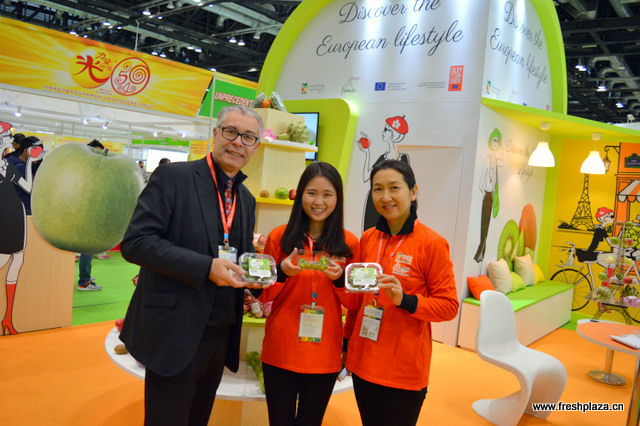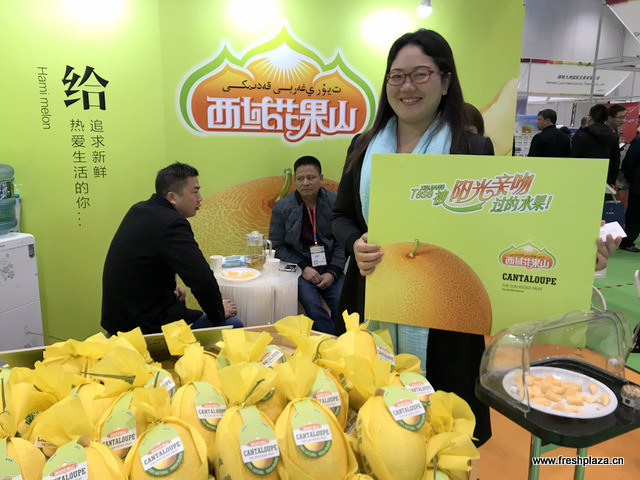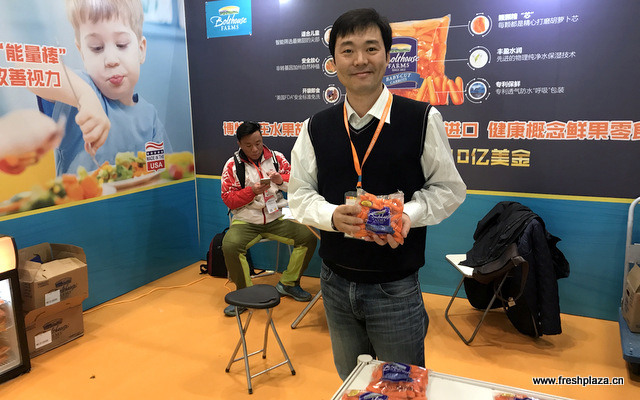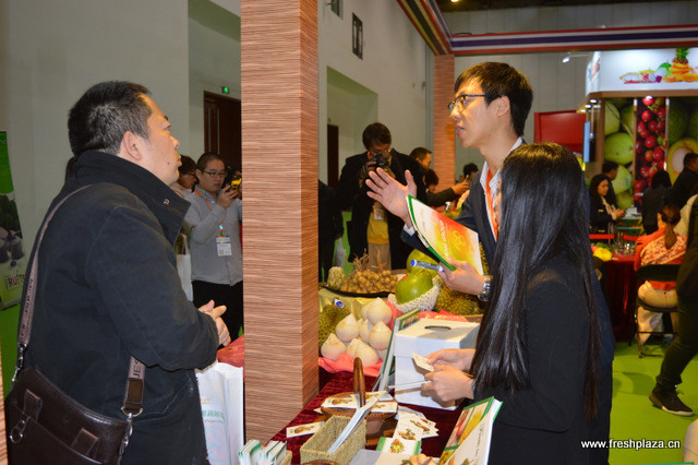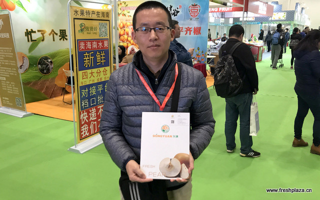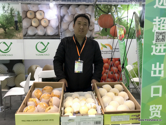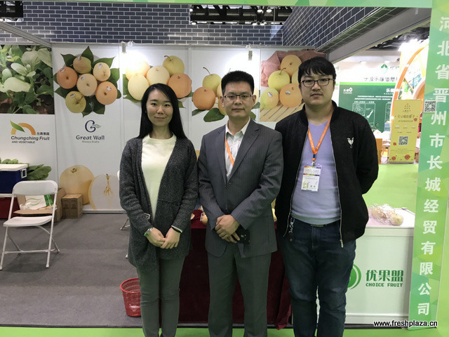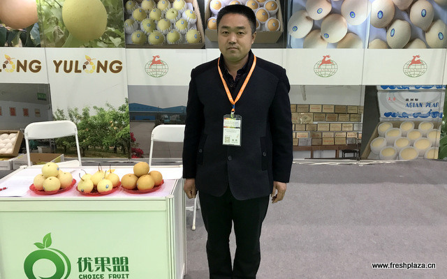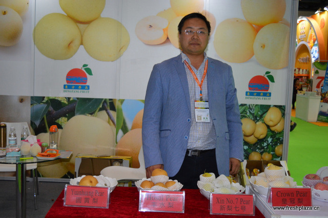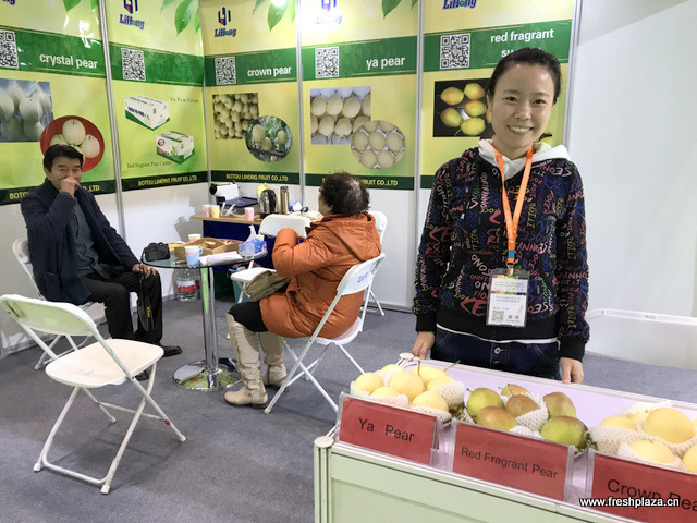 Small Lei of Tianbo Fruit, a pear grower and export company from Hebei province. Hebei is a large pear producing region in Northern China. This year, for the first time, a promotion event for Hebei fruits was organised at the exhibition to put the light on agricultural products from this province, well known in China but perhaps lesser known abroad.