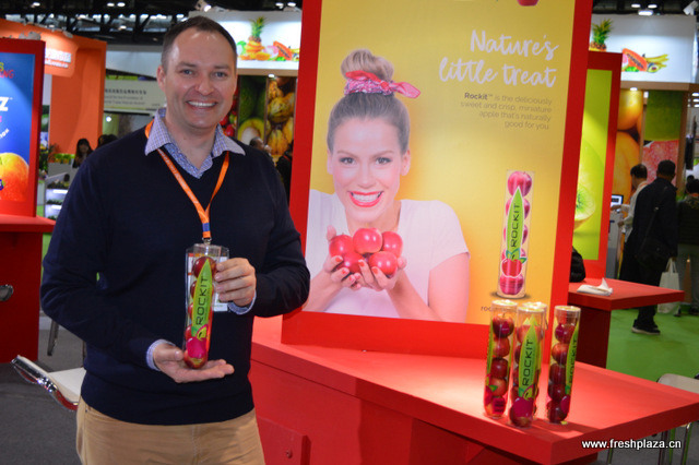 Mark Pay, business development manager at Rockit. Rockit is attending the exhibition to push brand buidling and raise awareness, and to learn what is happening on the Chinese market. Rockit apples are marketed as a convenience product and healthy snack. The company cooperates with partners such as Pagoda, 7-Eleven and FamilyMart.