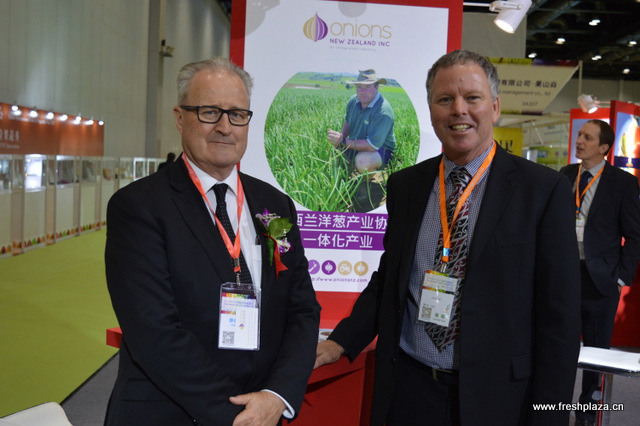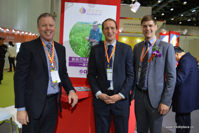 Kevin Wilcox of Wilcox & Sons, Kelvin Bezuidenhout of SoFresh New Zealand and James Kuperus of Onions New Zealand. All are in Beijing to learn about the Chinese onion market and possible export opportunities for New Zealand onions. So far the crop cannot enter China yet, and it is third in line for entry negotations, just after avocadoes and blueberries.