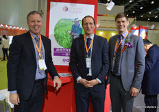 Apple and Pear Australia, license holder of Pink Lady, is well represented in Beijing. From left to right, Andrew Mandemaker, quality project manager, Phill Turnbull, Ceo, and Andrew Hooke, director of global development.
